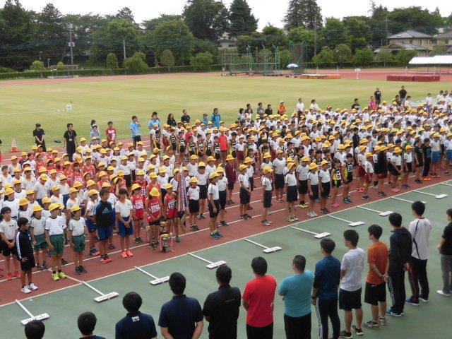 総合運動公園陸上競技場で、小学校陸上競技大会が行われました。今年度は、男子3位、女子4位、男女総合3位という成績でした。精一杯頑張った選手の皆さんに、心から拍手を送りたいと思います。また、保護者の皆様にはたくさんの温かいご声援をいただき、ありがとうございました。