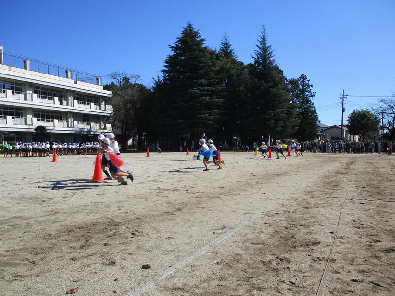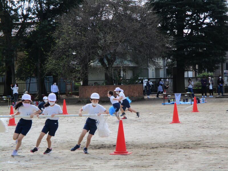 6年生は「大玉転がし」と「学級対抗全員リレー」を、1年生は「まっすぐはしろう」と「チェッコリ玉入れ」を行いました。