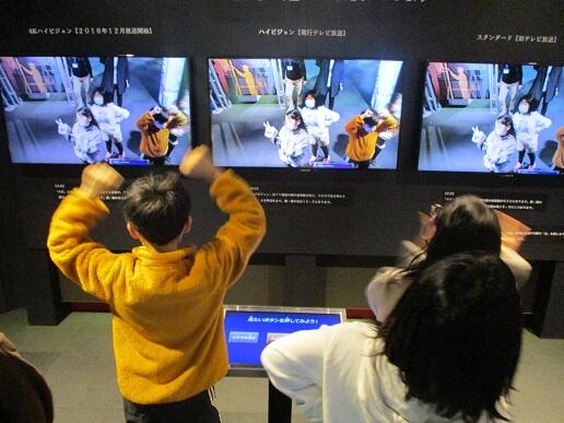 「映像技術や放送関係について」では、魔法のじゅうたんに乗っているように撮影したり、ニュース番組の撮影体験を行ったりしました。ニュース番組の撮影体験では、普段テレビに映らない裏方の仕事も体験することができ、たくさんの人が番組制作に関わっていることを知ることができました。