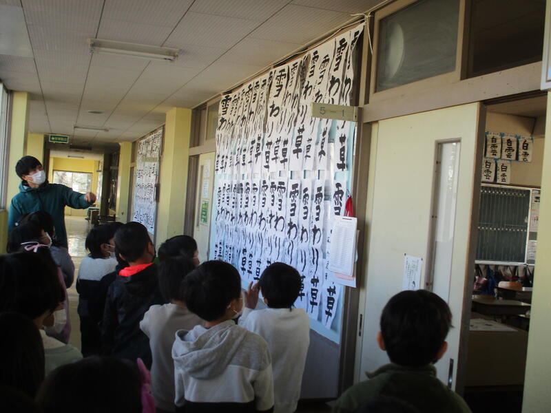 令和4年1月18日(水)、19日(木)に校内書き初め展を実施しました。感染症拡大防止のため、保護者の参観はできませんが、先日の書き初め会で描いた作品を廊下に掲示し、子ども達はお互いの作品を鑑賞しあいました。