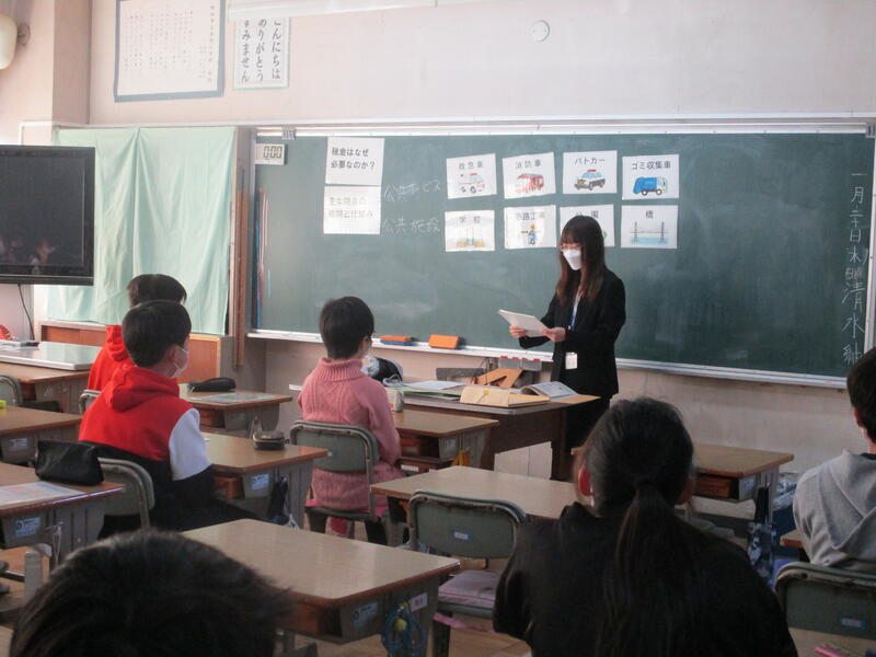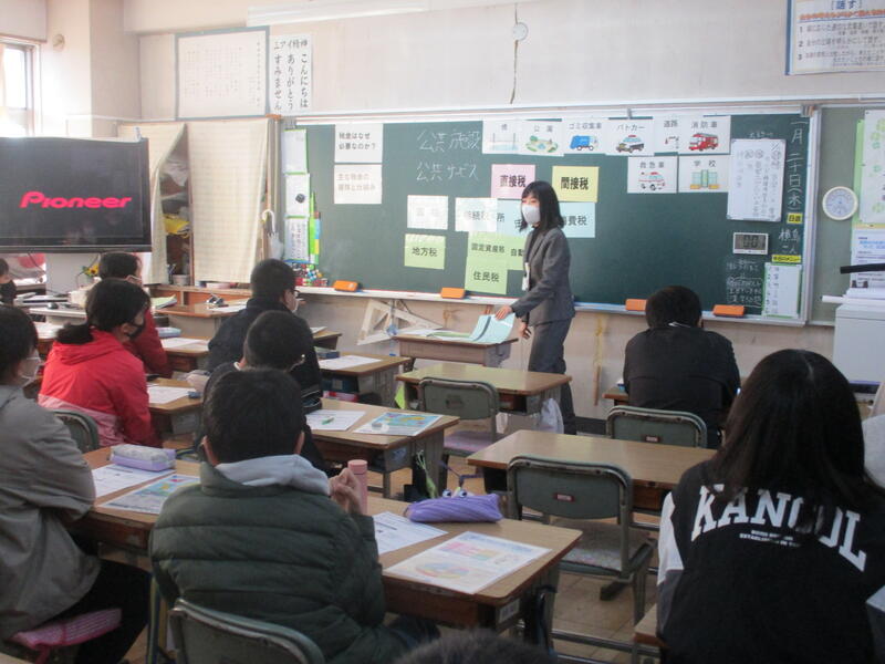 2月20日(木)に6年生を対象に各クラスで租税教室を行いました。税金のある世界と税金のない世界のビデオを視聴したり税金の使われ方について学んだりしました。税金が自分たちの生活にいろいろと役立っていることを知り、税の意義や役割について理解することができました。