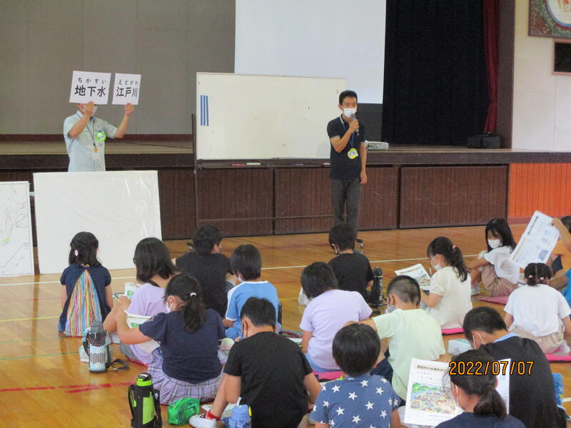 2022年7月7日(木)に4年生が社会科の授業の一環として、野田市水道部による出前授業を行いました。