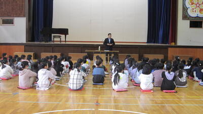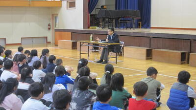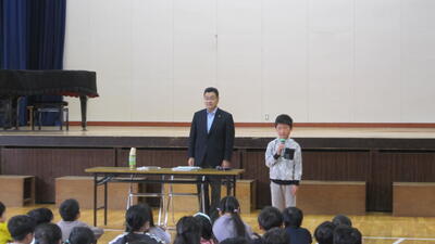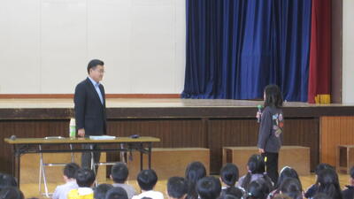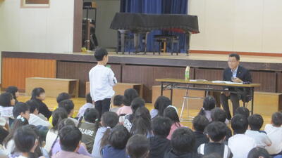 24日に「市長と話そう集会」がありました。野田市のことを学習している3年生が代表でお話をしました。