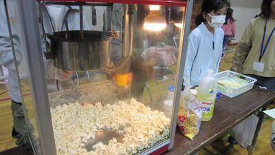 午後は雨模様のなか、体育館でボランティアの皆さんがイベントを開いてくれました。