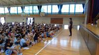 次に、先生方からのお話がありました。校長先生からは、困ったことがあったら、身近な大人や相談窓口に相談すること、笠井先生からは、交通安全やお金の使い方に気をつけること、小林先生からは、夏休み中でも朝ご飯をしっかり食べることなどのお話がありました。