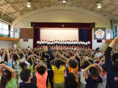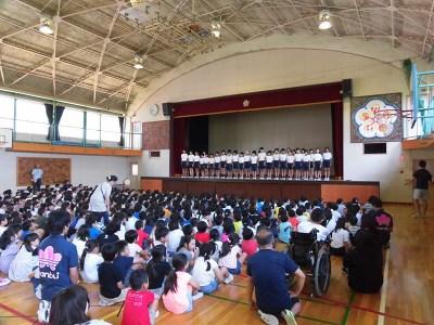 全校集会の時間に、「陸上選手を励ます会」を行いました。