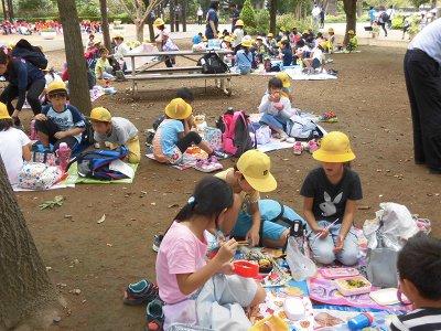 待ちに待ったお弁当です。たくさん遊んだので、みんな腹ぺこです。