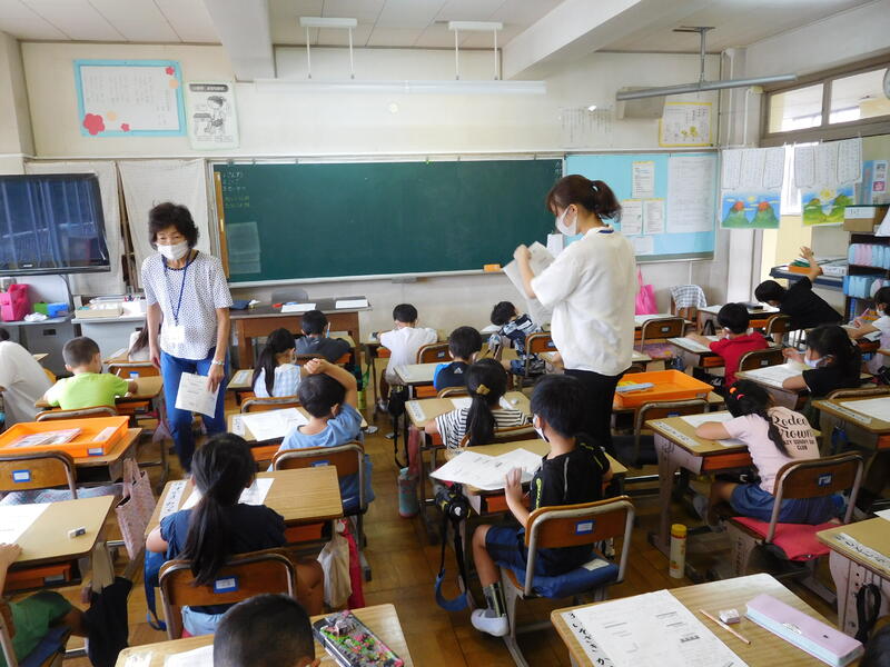 本日、今年度最初の土曜授業を実施しました。「南小プラム」では、土曜授業アシスタントの皆さんに入っていただき、子どもたちの学習支援をしていただきました。子どもたちは楽しそうに教わりながら、意欲的に学習プリントに取り組んでいました。今年度はあと7回土曜授業を予定していますので、学習の力を伸ばしていけるように支援してきたいと思います。