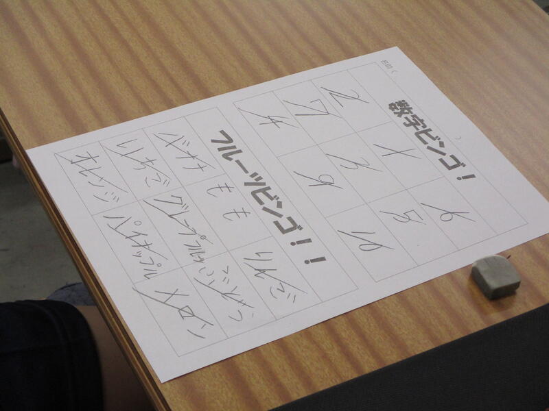 最後は、数字ビンゴやフルーツビンゴゲームで、今日習った言い方を思い出し、積極的に英語で発音しながらゲームに参加していました。