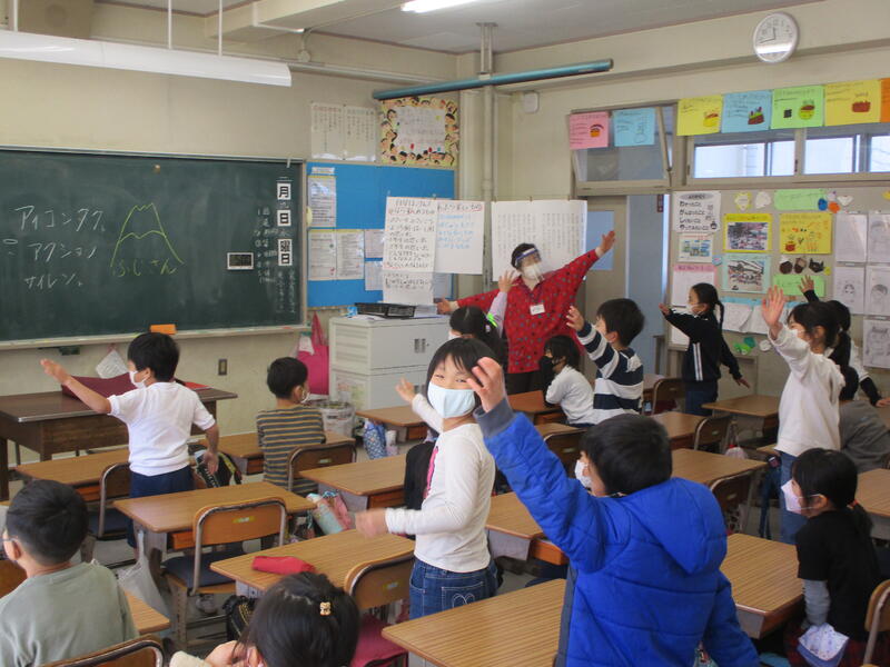 令和4年2月9日(水)に、講師として地域の藤本祐子様をお招きし、2年生が外国語活動の特別授業を行いました。藤本先生には、数年前から外国語活動の講師をしていただいております。昨年は、感染症の影響で実施できませんでしたが、今年度は2年生を対象に、本日と16日(水)の2回実施していただけることになりました。