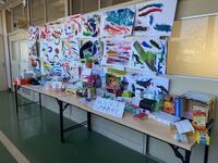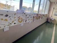 1Fの廊下、図工室前の廊下の掲示物などです。(子どもたちが作った作品です。)