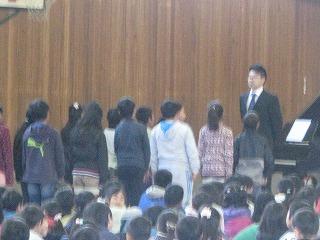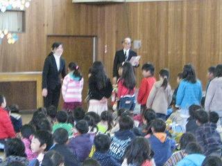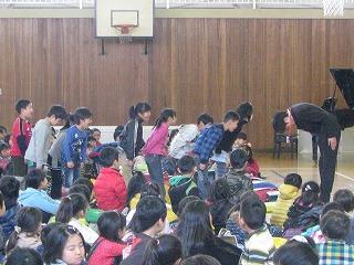 発表後は、新しい先生と「よろしくお願いします。」と元気にあいさつしました。