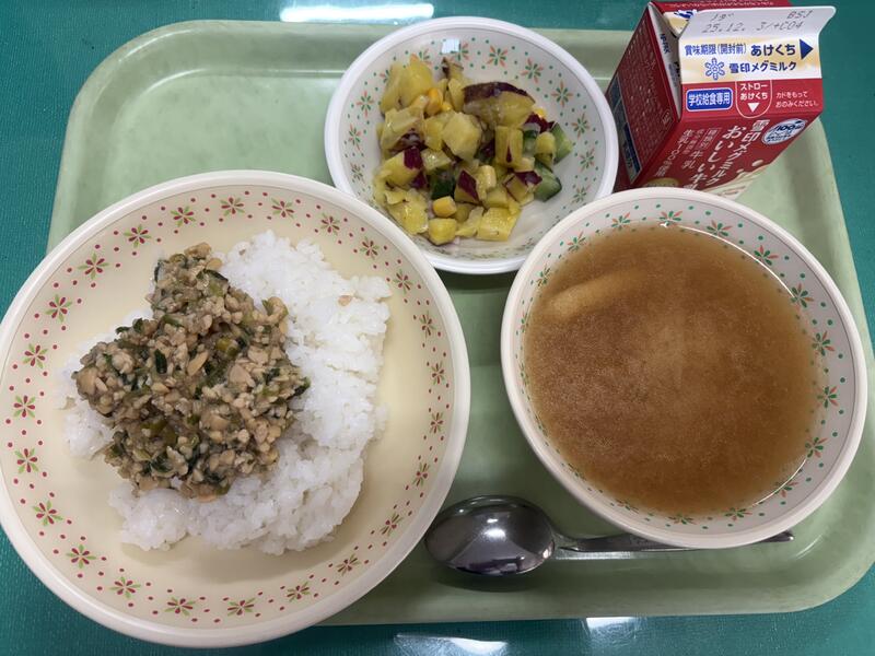 今日の給食は、6年生の1人が考えてくれた献立で、栄養バランスや彩り、旬や地産地消が考えられた献立でした☺️