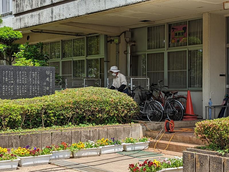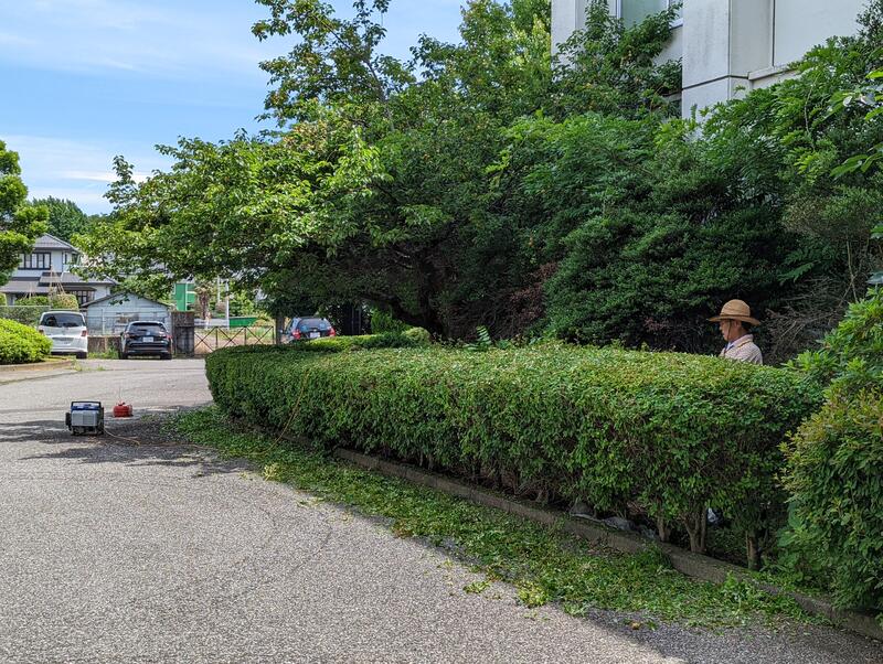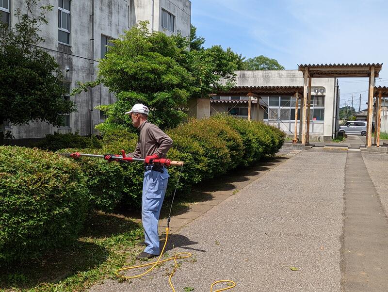 梅雨の合間のお日様が覗いた6月13日、学校の植木の整備のボランティアとして地域の方3名が、朝から大活躍して下さいました!