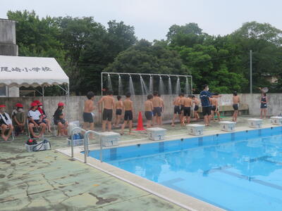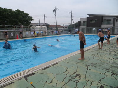 まだまだ渦巻き、波のプール、自由時間等はできないけれど、、、やっぱり暑い中での水泳は気持ちがいいね!(プール掃除にあたり、道具をお貸し下さった地域や他校の皆様、ありがとうございました。)