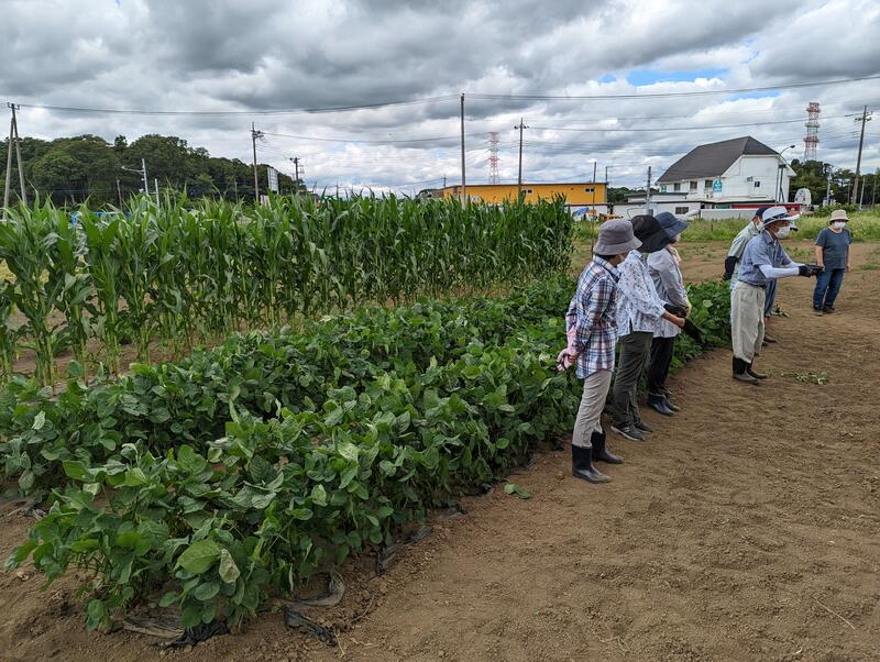 暑さが続く7月8日金曜日、地域コーデイネーターのお二人始め、地元有志の皆様のご厚意で毎年行っている収穫体験学習。今日は3年生の枝豆収穫です。