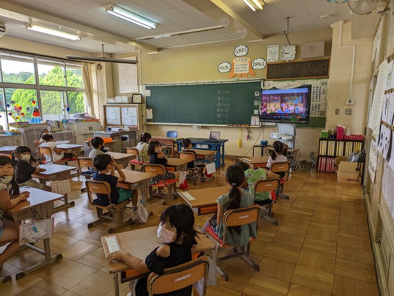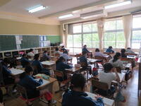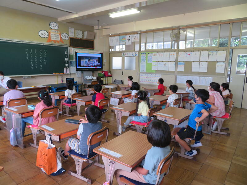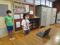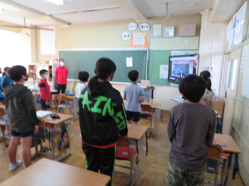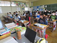 今日の1校時、夏休み前リモート集会が、校長室と各教室をオンラインでつないで行われました。