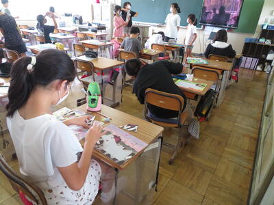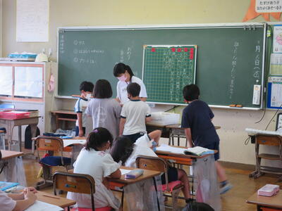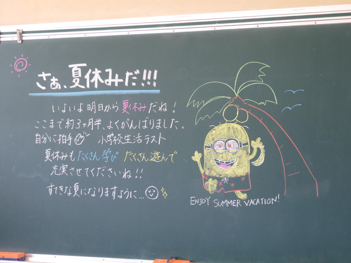 教室の風景④板書、イラストでメッセージを伝える担任も!尾崎っ子一人一人の夏休みが、素晴らしいものとなりますように!