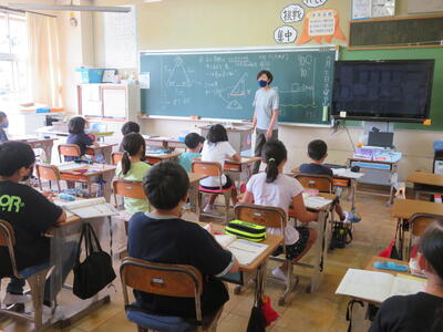 今日は教務の先生が、担任の先生(本日お休みです)の代わりに算数の授業をしていました。また、4年生は元気に体育の授業に取り組んでいました。