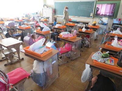1,3年生は安全教室の授業でした。1年生は交通安全の基本となる面や、横断歩道を渡るときの注意する点などを学び、3年生は安全な自転車走行について学習しました。