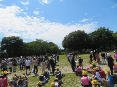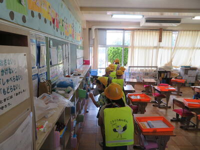 今日は令和5年度、初めての避難訓練を行いました。一次避難、二次避難と子どもたちは自分の身を守るために、しっかりと訓練に参加していました。なぜ避難訓練が必要なのか、などのお話を担任の先生から指導され行いました。真剣にのぞんでいましたが、素晴らしい避難訓練になりました。