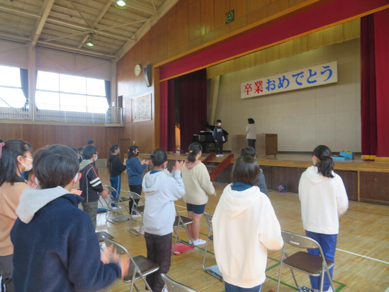 入学式には5年生、6年生が児童代表として参列します(2~4年生はお休みです)。上級生として、歌や呼びかけもとても頑張っていました。新入生のみなさん、明日楽しみにしていてくださいね。