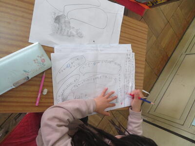 5年生、理科の授業で・・・本日の空模様について学習中です。この瞬間の空の様子を描写。しかし風はきまぐれで、雲がまるで生き物のように流れていました。5年生のみなさん、仕上がりはどうだったでしょうか。