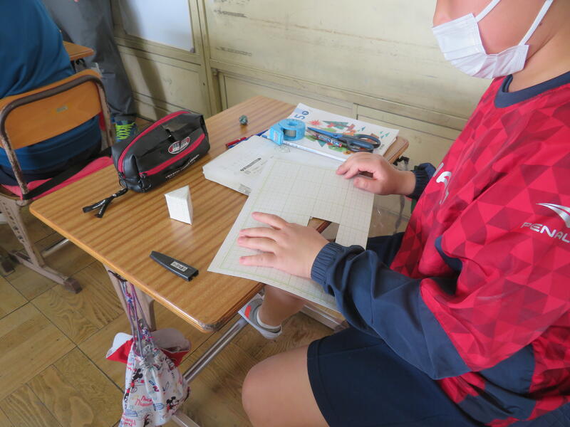 教室の風景①友達の作った木工パズル(図工作品)、楽しい!