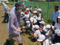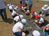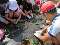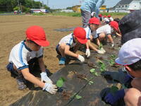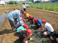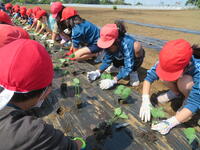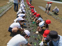 2,3年生、けやき学級で枝豆の苗を植えました。畑の先生方のお話をしっかりときいて、「元気にそだってね、大きくなってね!」とおまじないをかけながら一生懸命に頑張りました。ご指導いただいた先生方、ありがとうございました。