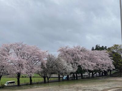 下の写真は、雨が強くなる前の校庭の桜です。雨にも負けず、風にも負けず、尾崎小の子どもたちのように、たくましく力強くきれいな姿で咲き誇ってほしいです!
