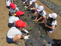 2,3年生、けやき学級で枝豆の苗を植えました。畑の先生方のお話をしっかりときいて、「元気にそだってね、大きくなってね!」とおまじないをかけながら一生懸命に頑張りました。ご指導いただいた先生方、ありがとうございました。
