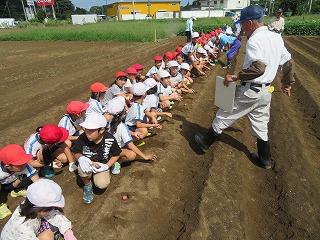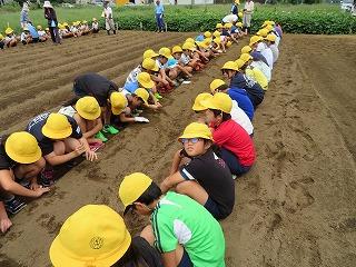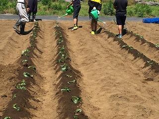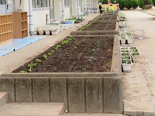 地域の石川さん、遠藤さんをはじめボランティアの皆さんが手伝ってくださり、子どもたちも上手に植えることができました。