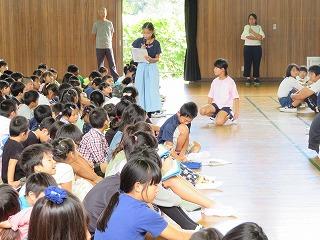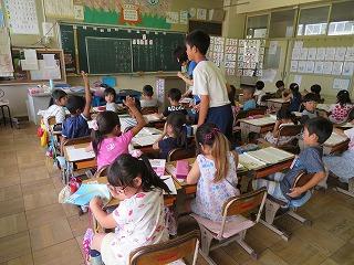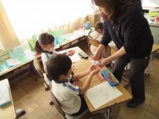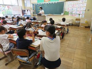 普段、使ったことがないそろばんに興味はあるものの、頭で計算してから珠を動かしているようでした。それでも、講師の先生が一人一人丁寧に指導してくださるので、子どもたちは安心して授業を受けていました。このように、地域の教育力で学校を支えてくださることに感謝しております。そろばん教室は、28日(水)まで行われます。