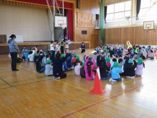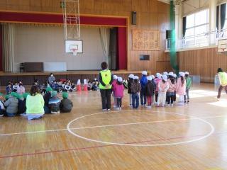 全校たてわり集会の時、なわとびができるようになるために、たてわりで教えあいたいとの意見が出されました。そこで、ロング昼休みのたてわり活動にしてなわとび交流会を行いました。