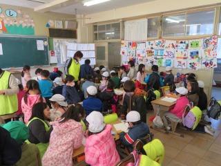 昨日の3・4校時、2年生が尾崎の自然や町の様子を知るために、2つのコースに分かれて探検に行きました。