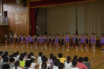 お迎えしてステージドリルの練習(隊形や動き)を、