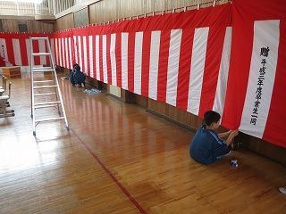 ピカピカの1年生を迎えるため、6年生が会場の準備をしました。
