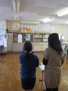 発表後は、新しい先生と「よろしくお願いします。」と元気にあいさつしました。