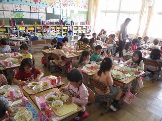 1年生最初の給食のメニューは、「尾崎小カレー」。楽しみですね。