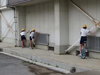 警察署の方の説明を聞いた後、体育館の模擬道路で実際に体験しました。