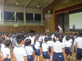 2年生以上の351名の児童で、着任式・始業式を行いました。