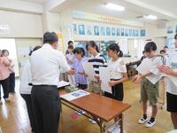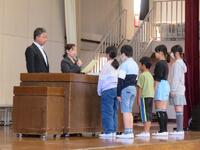 表彰では、陸上やレスリングなどで優秀な記録を出した児童、また科学作品展などで素晴らしい評価をいただいた児童が登壇しました。