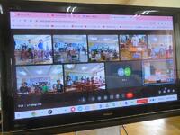 下の写真は、夏休み入ってすぐ7/20、学校近くの公民館で行われたの夏祭りの様子、7/30のサンスマイルの様子、8/19の研修会の様子と、講師の先生を迎えるに当たって、玄関付近を掃除している職員の姿、8/21のon line 朝の会の様子です。