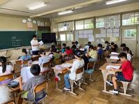 全校集会は、夏休み前と同じように暑さを考慮し、リモートで行いました。夏休み中に本市教委、Google主催の子ども向けのICT研修があり、ICTジュニアリーダーとして頑張った児童が表彰されました。生徒指導担当の先生や、7月末で異動された加治先生のビデオメッセージ、8月から本校に復帰された坂口先生の話をしっかりと聞いていました。2年生に転入生が1人入りました。2年生をはじめ、全校で仲良くできるといいです。自己紹介を全校児童の前でしっかりと堂々と行っていました。