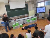 消防署のご協力があり、応急手当講習会が行われました。6年生が活動しましたが、命の重さをかみしめながら、消防士さんのお話を聞き、AEDにそっくりな機器を使いました。真剣な表情で取り組み、「胸骨圧迫」という耳慣れない言葉の意味を覚え、人命救助に必要な活動をしました。今日は朝から異常なほどの暑さのため、体育館ではなく、エアコンが効く室内で行いました。6年生のみなさん、ご苦労様でした。本校に来ていただいた野田消防署のみなさん、ありがとうございました。