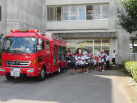 フレッシュタイムには、1,2年生を対象にした「働く乗り物」として、消防車のことについての説明を消防士の方がしてくださいました。