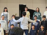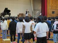 6年生は川間中学校の合唱コンクール、文化祭などが一つになった行事、「川創祭」に参加します。尾崎小学校、川間小学校の6年生が招待されました。本番前、最後の練習を体育館で行いました。