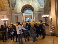 昨日、先生方は卒業式の会場となる体育館をワックスがけしました。6年生全員が気持ちよく巣立ってほしいという願いを込めて行いました。