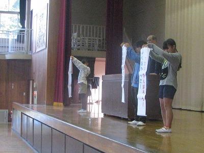 お迎えしてステージドリルの練習(隊形や動き)を、