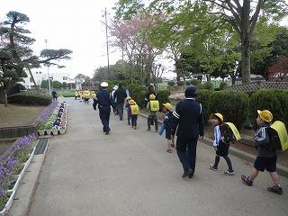 1年生の下校時には、警察署の方と交通安全協会の方も途中まで一緒に